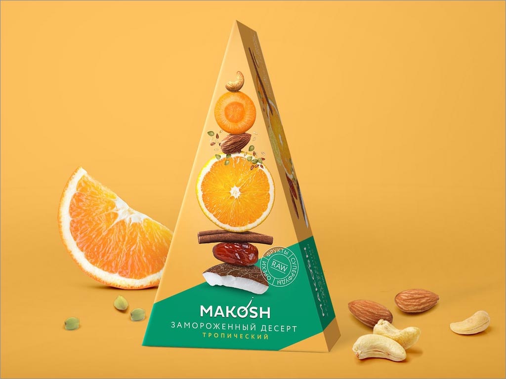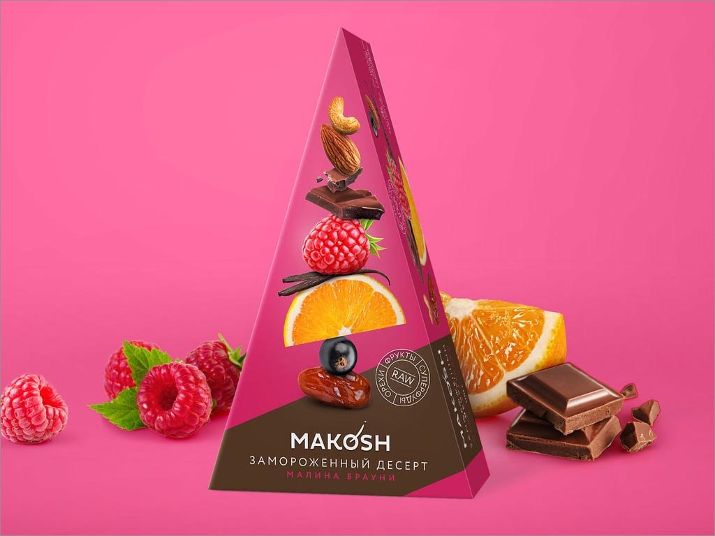 位于莫斯科的Twin Branding開發(fā)了MAKOSH健康甜點的包裝設(shè)計概念。外出工作基于定性的消費者研究(對健康食品消費者進行的30次深度訪談)和我們的案頭研究。健康食品的消費者是有良好紀律的人,他們遵循自己的規(guī)則,并且始終知道為什么要這樣做。動機可能有所不同,但它們似乎都承受著相同的痛苦:缺乏機會吃到真正美味可口的甜食。他們夢寐以求的產(chǎn)品不會在他們的口味期望和健康飲食規(guī)則之間取得折衷。他們需要在生活中占有一席之地,以獲取與食物相關(guān)的明亮情感。令人興奮的東西,但成分含量無可挑剔?,斂剖玻∕akosh)甜點以其理想的配方,口味和質(zhì)地滿足其期望。甜點由新鮮水果,堅果和超級食品制成,并且速凍。它們不含糖,面粉或任何其他“不健康”成分。在進行MAKOSH健康甜點包裝設(shè)計時,我們希望引起消費者的感召力,創(chuàng)造愉悅的希望。同時,我們必須通知消費者有關(guān)一種新的未知類型產(chǎn)品的內(nèi)容。飾面上的產(chǎn)品區(qū)具有成分均衡的特點。
