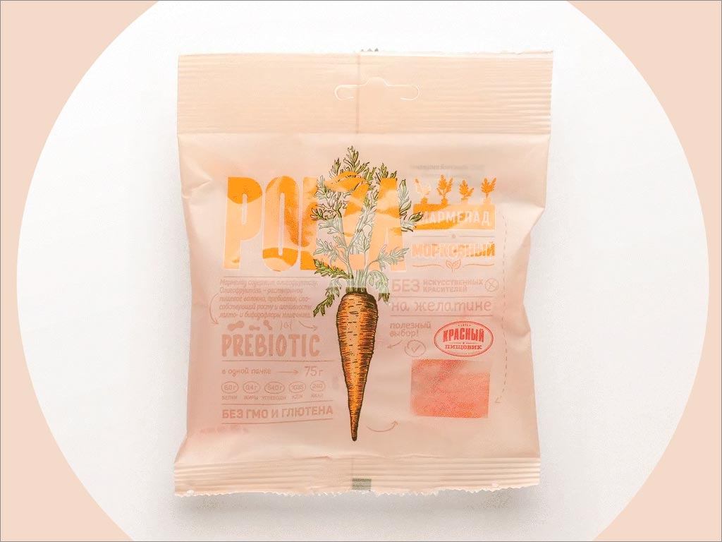 Polza糖果包裝設計的任務是為白俄羅斯市場開發(fā)“軟糖”類別的創(chuàng)新包裝。在我們對全球趨勢的研究中,發(fā)現“健康糖果”的趨勢。消費者研究表明,人們希望獲得一種普通口味的新型軟糖。那么,還有什么比植物膠更不尋常,更健康呢?決定制作5種軟糖口味:南瓜,芹菜,玉米,番茄,胡蘿卜?!?Polza”這個名稱反映了該產品的本質和主要優(yōu)點:維生素含量更高,對我們的整體健康和身體的損害更少。選擇“植物學百科全書”的概念作為包裝的設計解決方案。包裝上的插圖類似于百科全書中的一頁,而USP的文本框清楚說明了為什么這些膠質糖很有用。這樣的糖果對于那些關心自己的人來說是一種美味的享受。